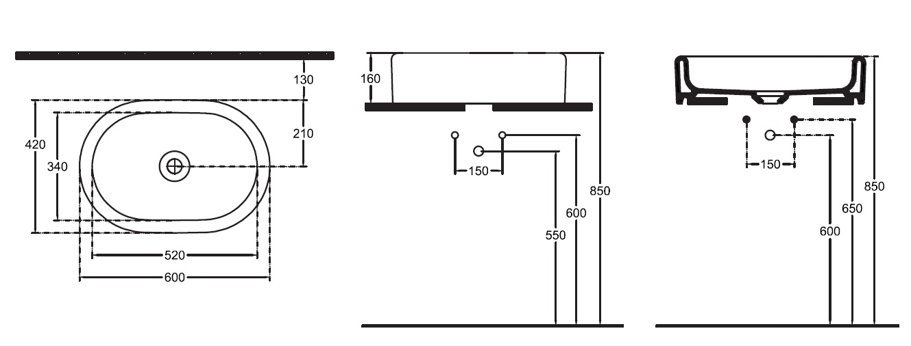 Curvo Inset Tezgah Üstü Lavabo 60 cm Beyaz